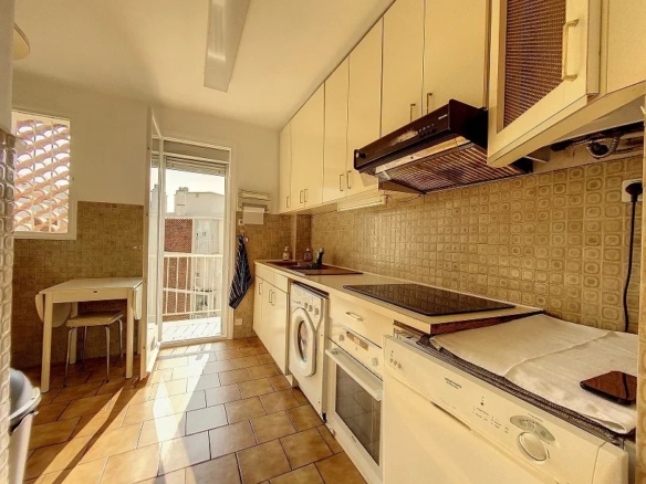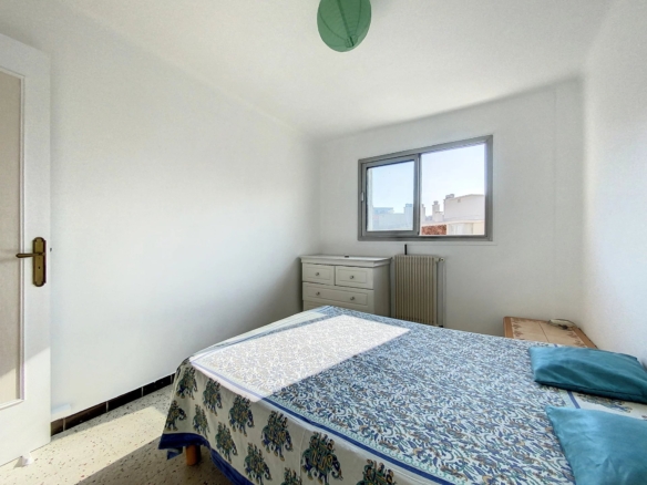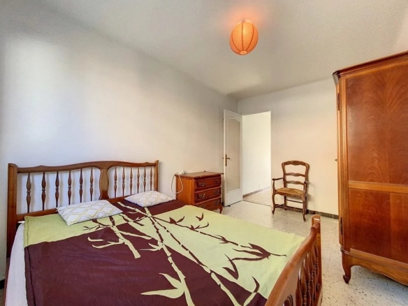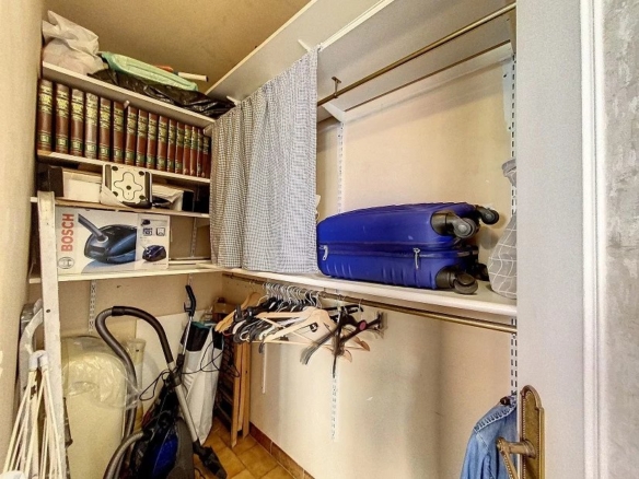 It consists of an entrance opening onto the living room, an independent kitchen, two bedrooms, a bathroom, separate WC, a pantry or dressing room, two balconies.