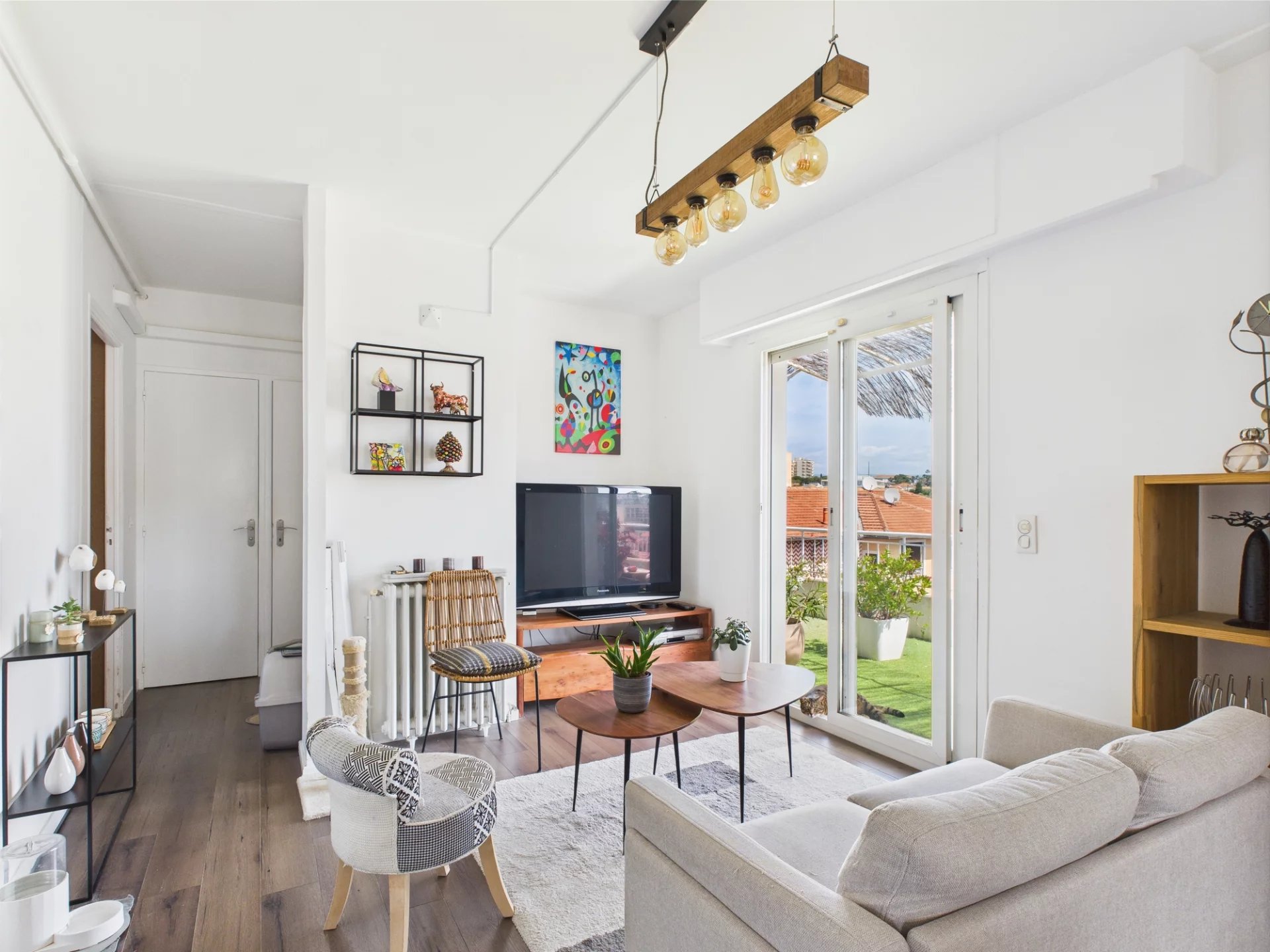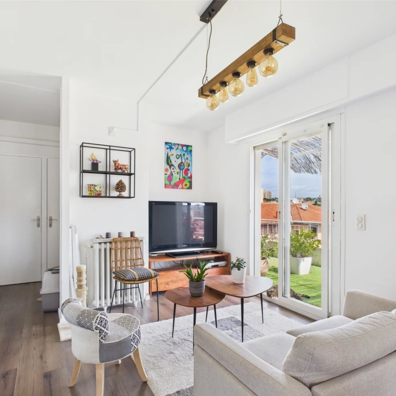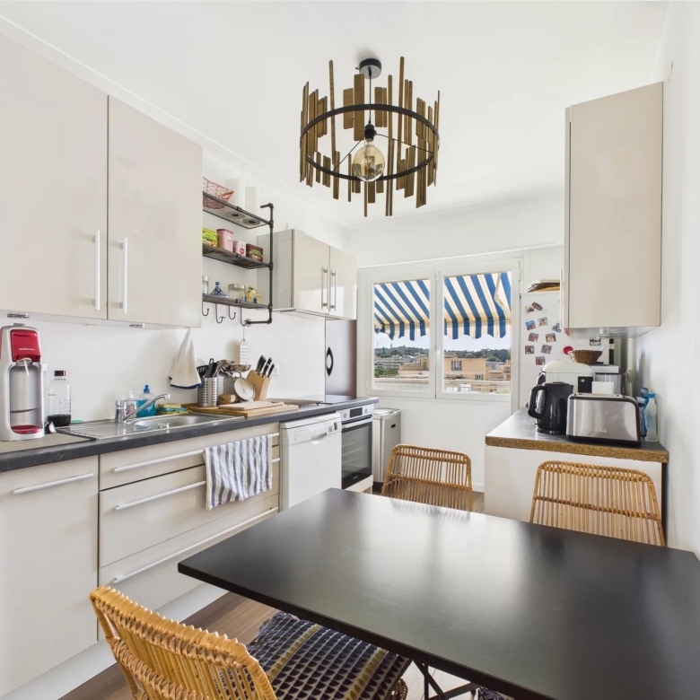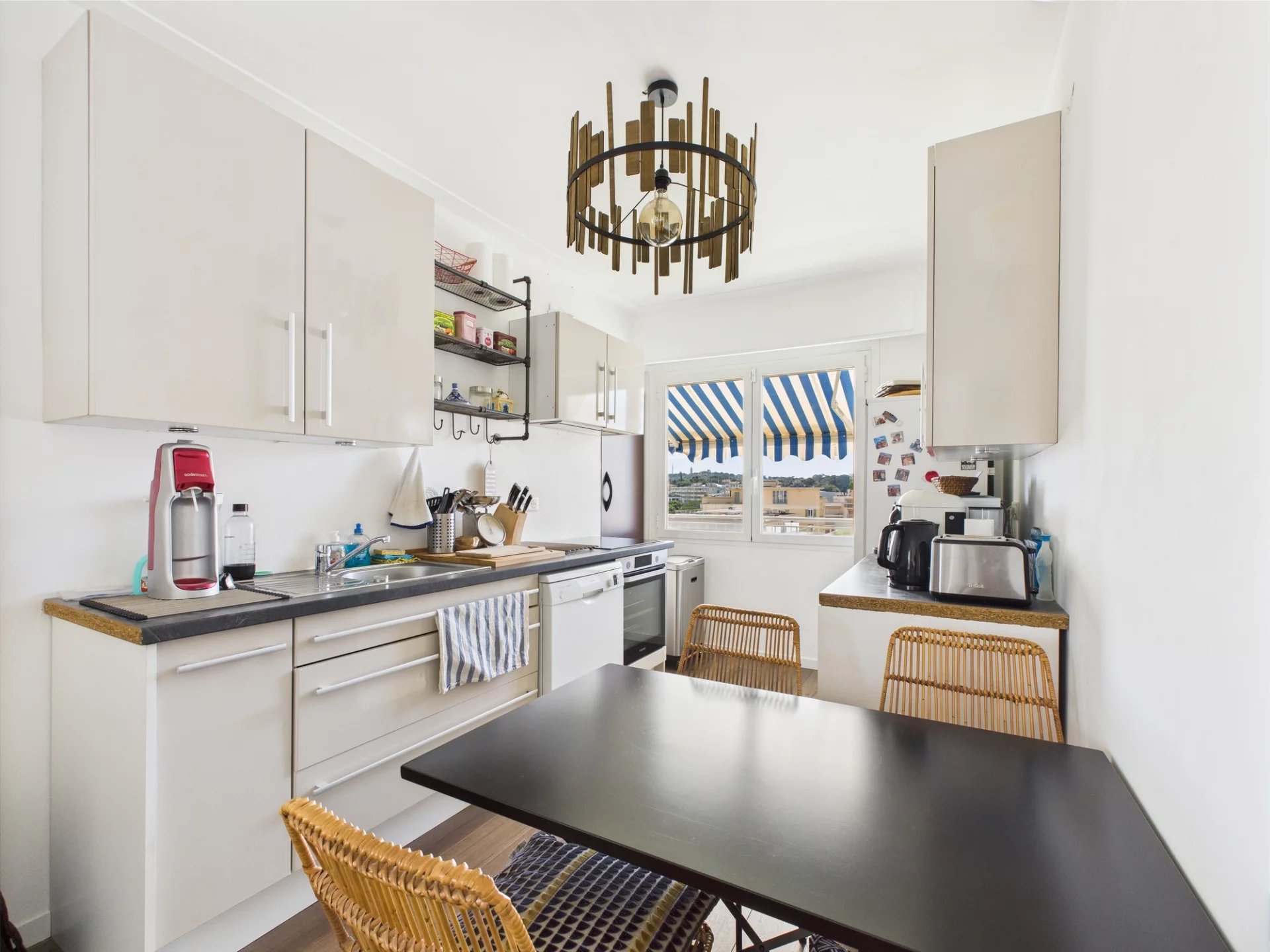 Idéalement situé au cœur de Juan-les-Pins, à seulement 5 minutes à pied des plages, cet appartement lumineux de 55 m² se trouve au sixième et dernier étage d’une résidence avec ascenseur.