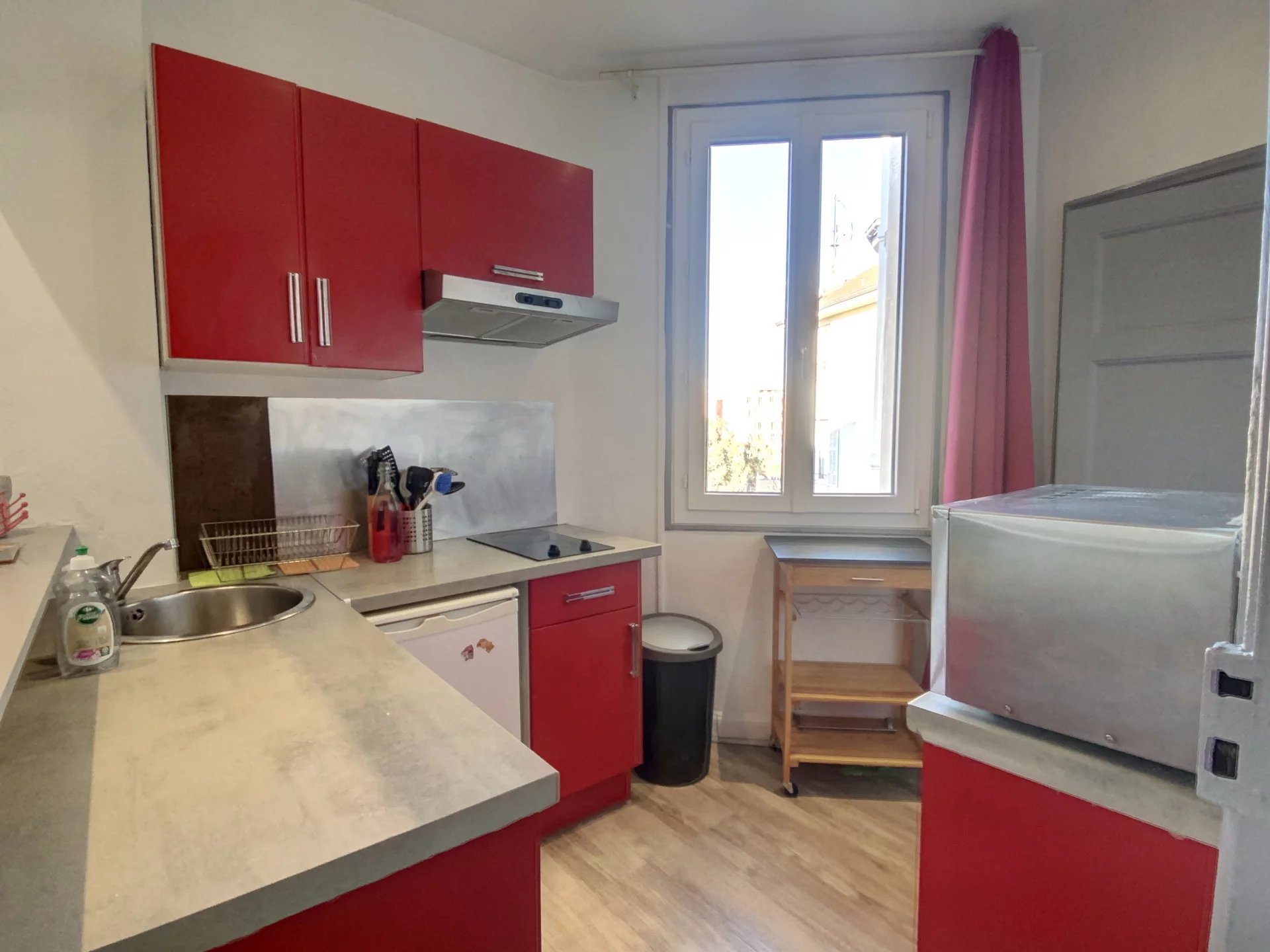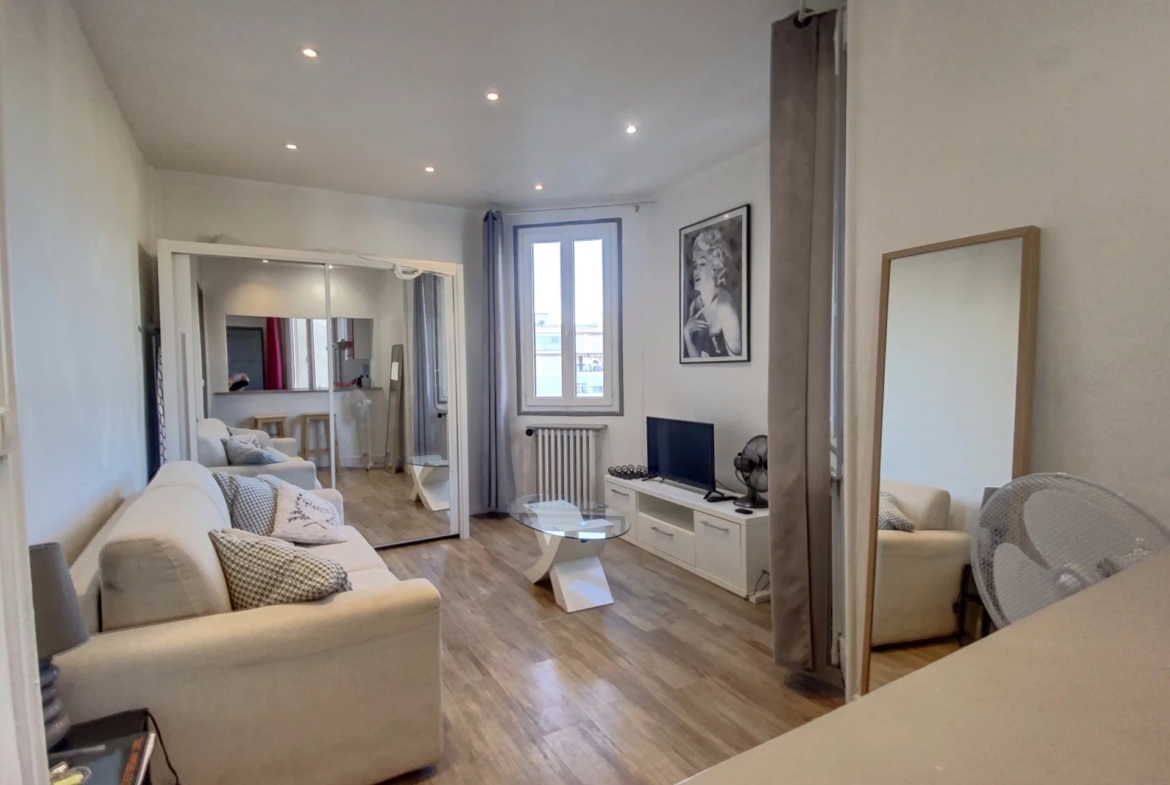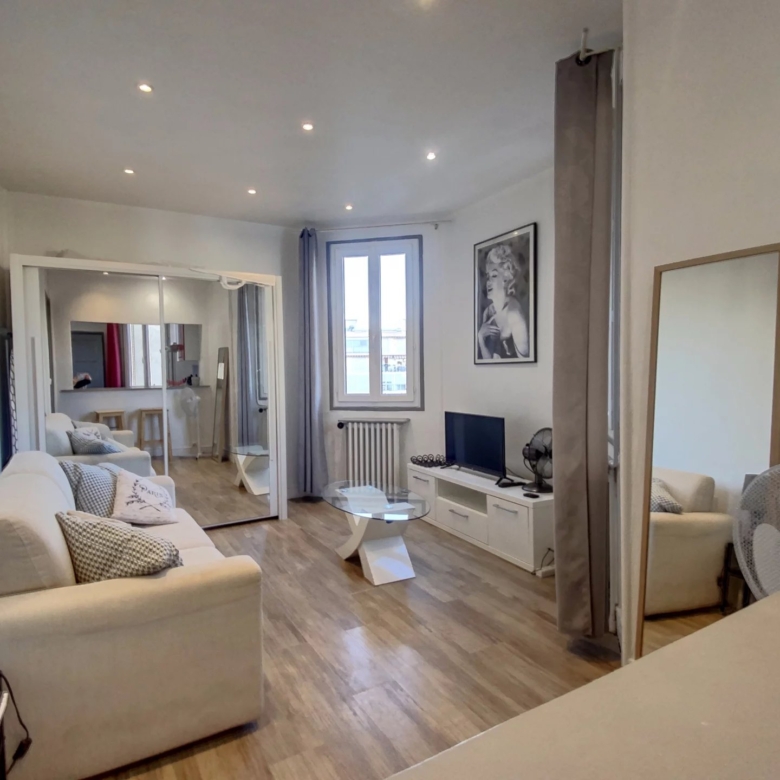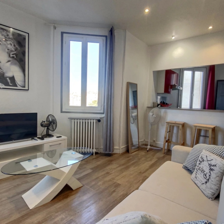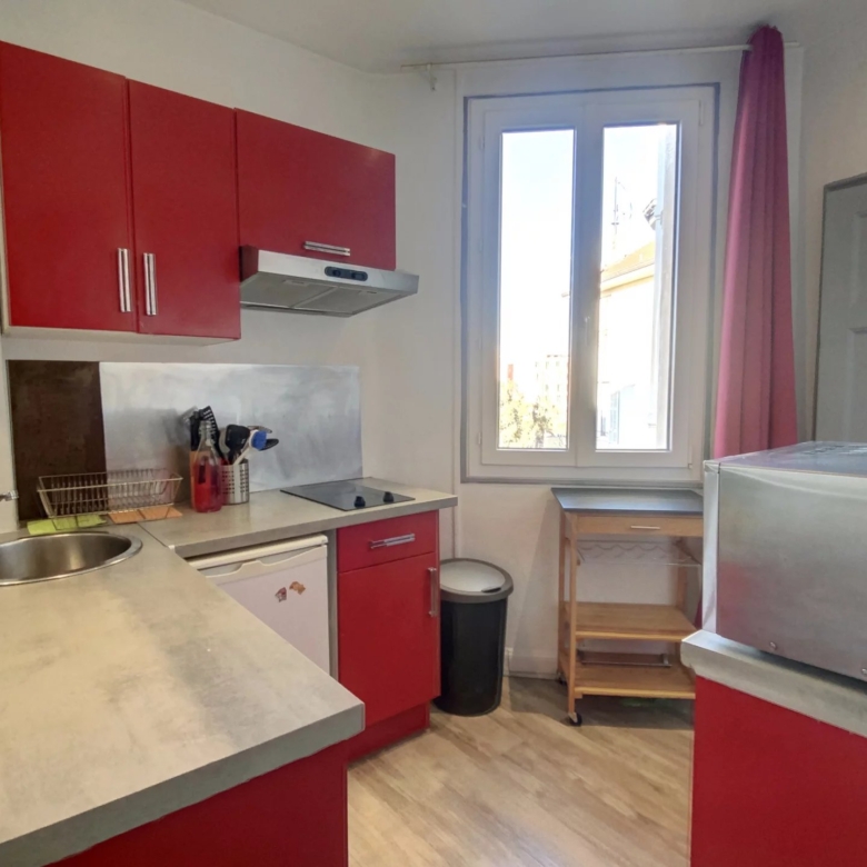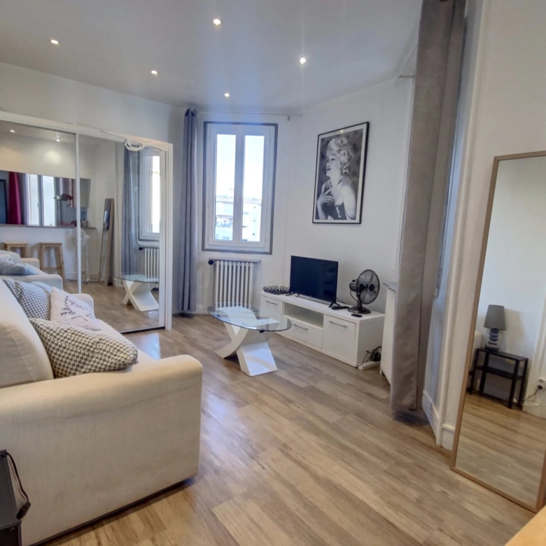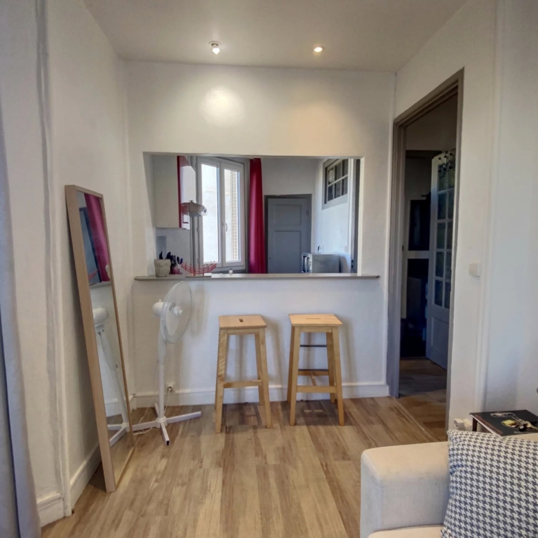 Studio de 26m² entièrement meublé, il se compose d’une entrée, d’un séjour, d’une cuisine équipée et d’une salle d’eau avec toilettes.