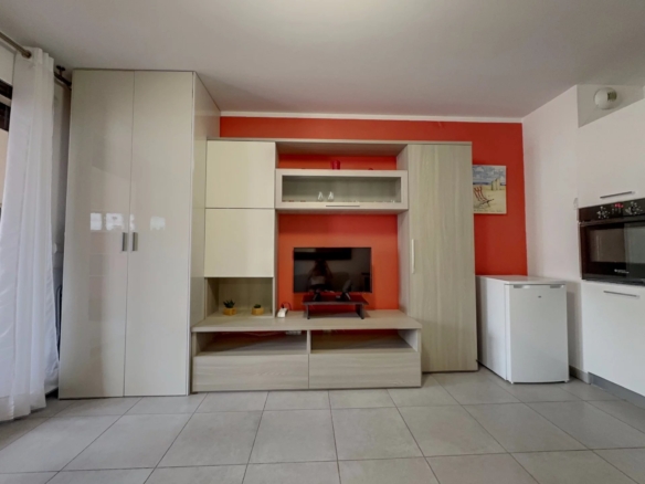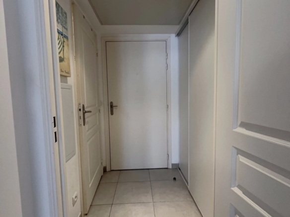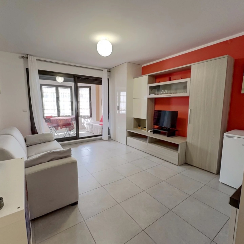 Il se compose d’un entrée avec placard, une salle d’eau avec des toilettes, un séjour avec cuisine équipée, et une loggia