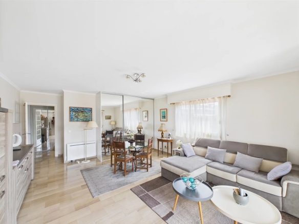 L’appartement se compose d’un vaste séjour lumineux, prolongé par une terrasse profonde de 20 m², idéale pour recevoir ou se détendre face à la mer.