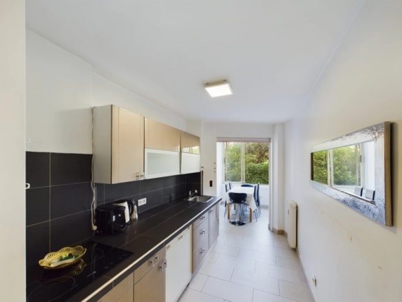 Hall, séjour, cuisine séparée, loggia sur jardin, 2 chambres, dressing, séjour avec balcon.