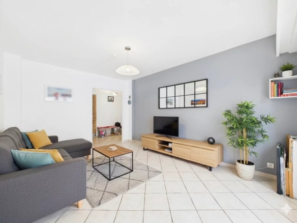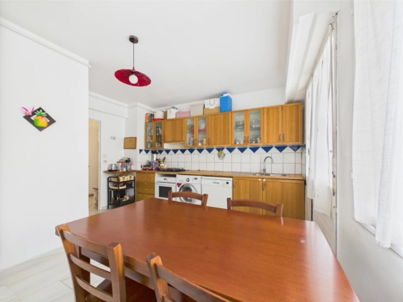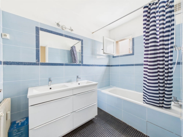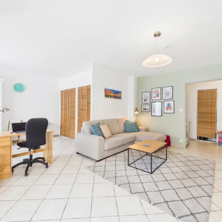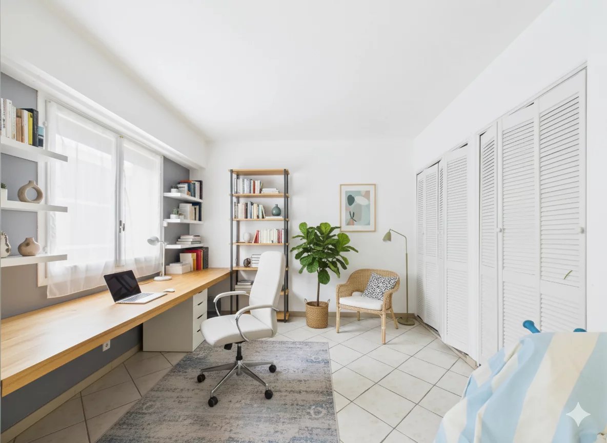 Il se compose d’un hall d’entrée avec porte sécurisée, d’une grande cuisine équipée avec coin salle à manger ouvrant sur un balcon, d’un vaste séjour lumineux avec accès à un second balcon, et d’un espace bureau confortable.