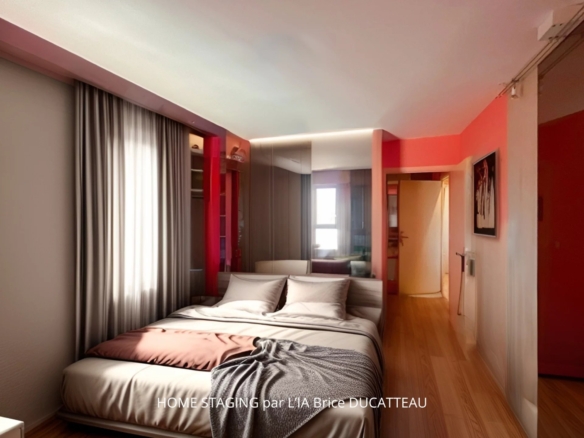 2 chambres en suite avec rangements, grande cuisine, balcon.