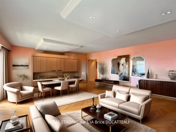 Hall d’entree, séjour de 32M2 sur belle terrasse de 20m2 plein soleil avec vue dégagée et vue mer.