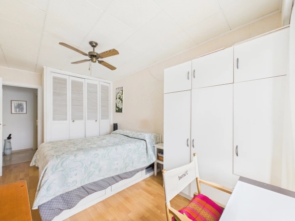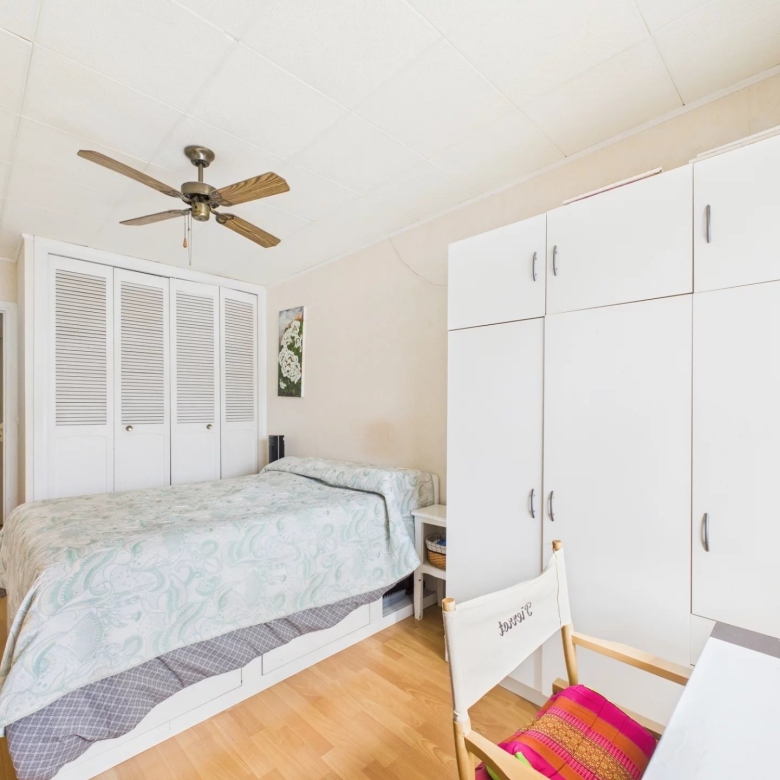 La chambre spacieuse de 11,5 m², également pourvue d’un grand placard intégré, offre un bel espace de rangement.