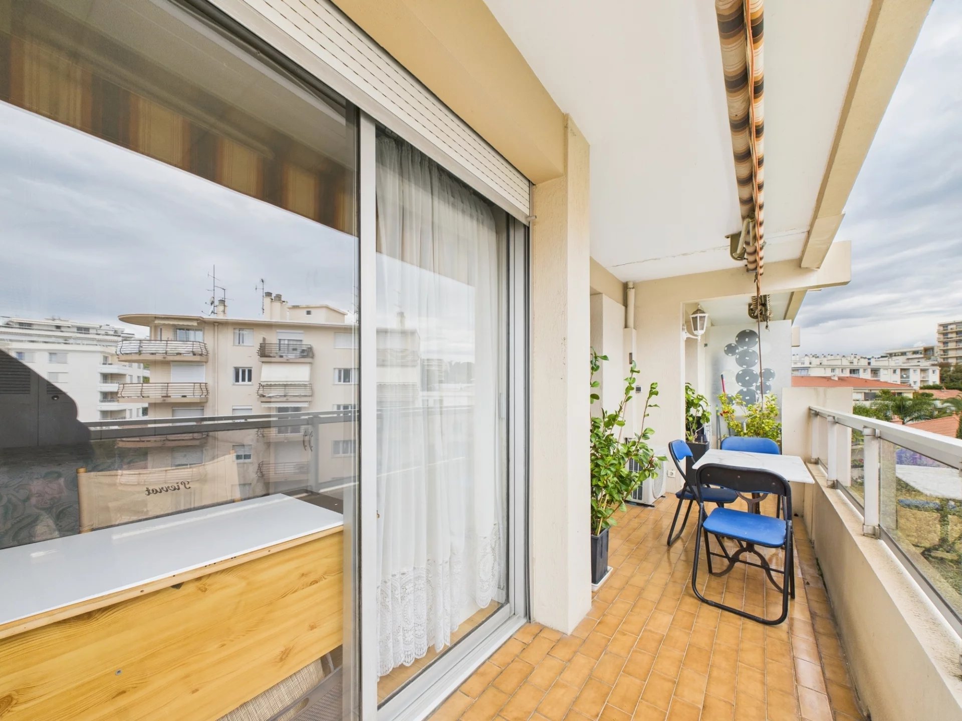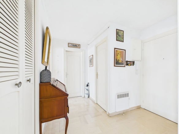 L’entrée s’ouvre sur un hall doté d’un placard de rangement intégré, desservant un vaste séjour lumineux de 22 m² équipé d’une climatisation réversible, idéal pour votre confort en toute saison.