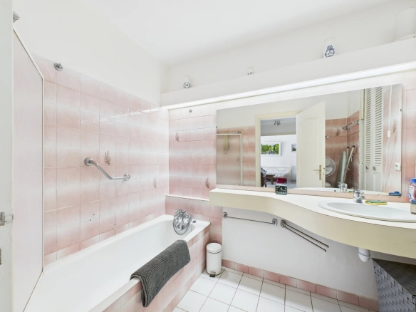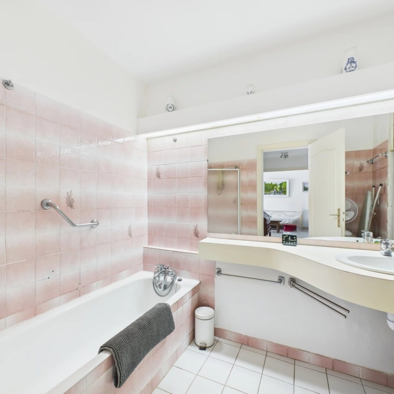 L’appartement dispose également d’une salle de bains, de toilettes séparées.