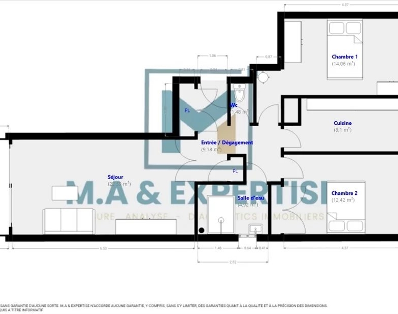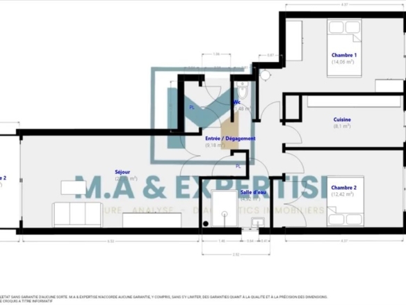 Ce bien traversant offre une distribution optimisée avec de belles surfaces sur l’ensemble des pièces. Il se compose comme suit :