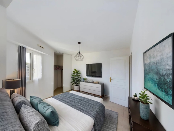 L’espace nuit propose deux chambres. La première bénéficie d’une salle de bains attenante, offrant un confort optimal. La seconde chambre offre également des espaces de rangements et s’ouvre sur la terrasse.