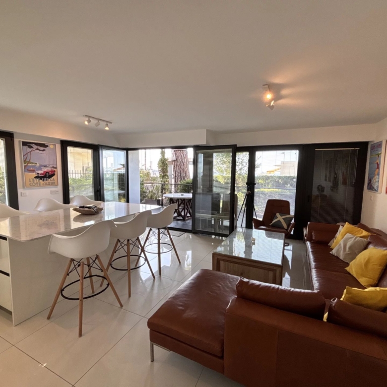 Séjour/cuisine lumineux de 36 m² prolongé par une terrasse plein sud de 44 m² avec vue mer