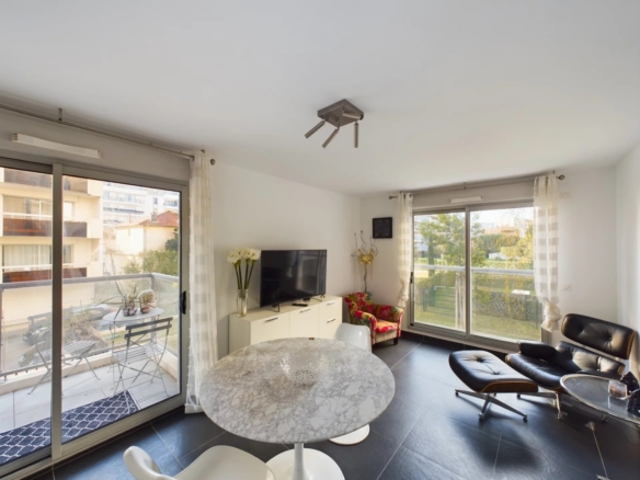 Venez visiter dans une résidence de 2021, un deux pièces de 50m2 au calme à 200m des plages de Juan les pins.