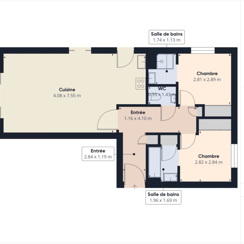 Deux chambres de 10 m² chacune, offrant confort et intimité, avec leur salle d’eau privative :