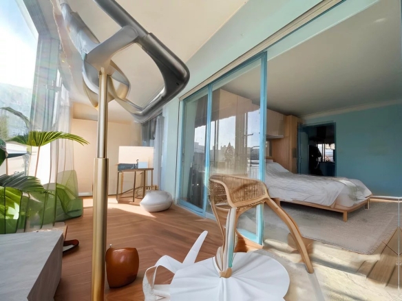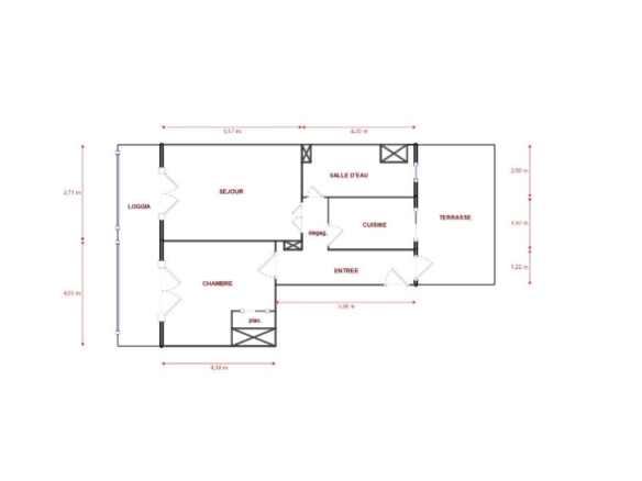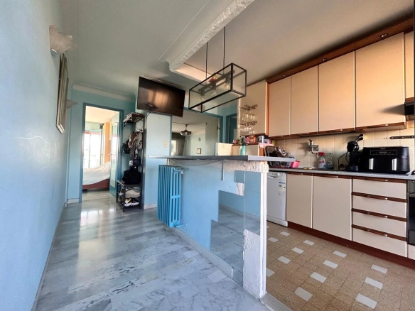 Il se compose d’un couloir d’entrée, d’une cuisine aménagée, d’une grande salle de douche avec WC, le tout donnant sur une vaste terrasse de plus de 23 m² a ciel ouvert. L’appartement dispose également d’une belle chambre et d’un grand séjour, tous deux ouverts sur une véranda exposée plein Sud avec vue dégagée.