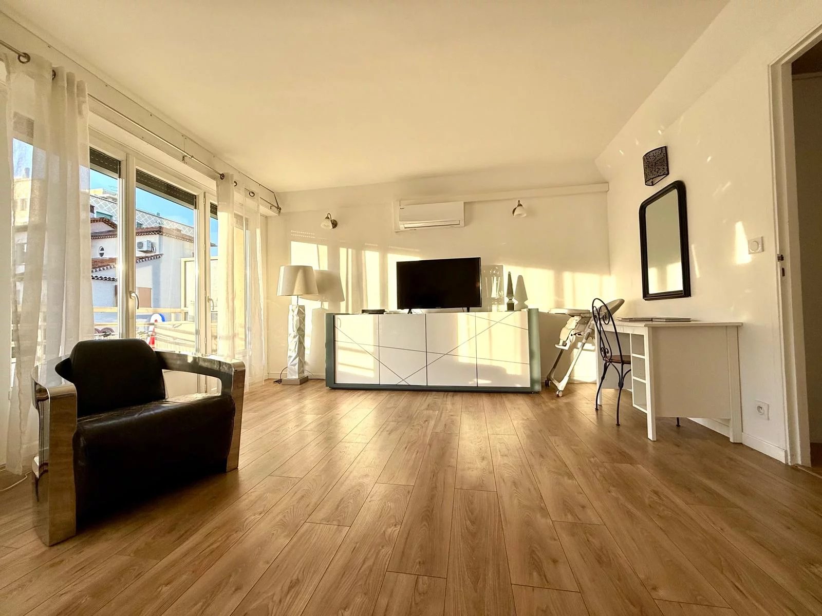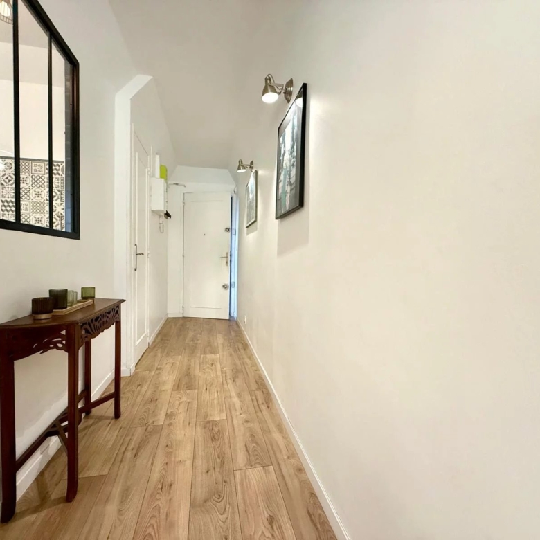 Entièrement rénové avec soin, il se compose d’un spacieux séjour lumineux d’environ 30 m² avec cuisine ouverte moderne et équipée, d’une chambre confortable, d’une salle d’eau contemporaine ainsi que de toilettes séparées.