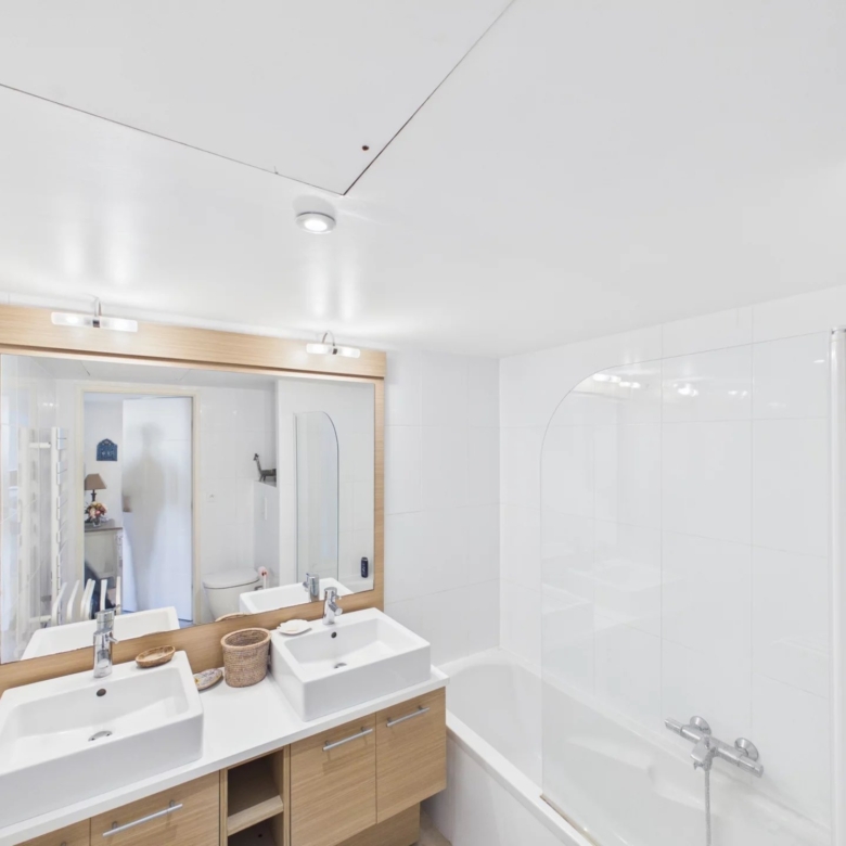 Il se compose d’une entrée avec rangements, d’un séjour baigné de lumière ouvrant sur une profonde terrasse de 12 m² exposée sud-ouest, idéale pour profiter des fins de journée ensoleillées, d’une cuisine indépendante entièrement équipée, de deux chambres avec placards intégrés, d’une salle de douche, d’une salle de bains avec WC ainsi que d’un WC indépendant.