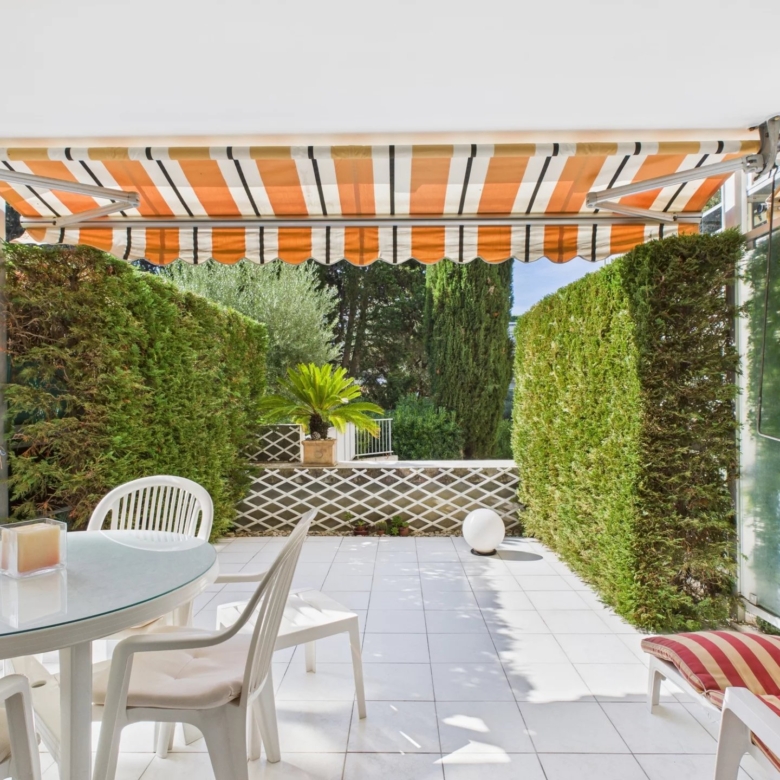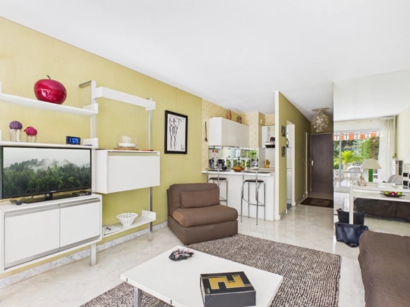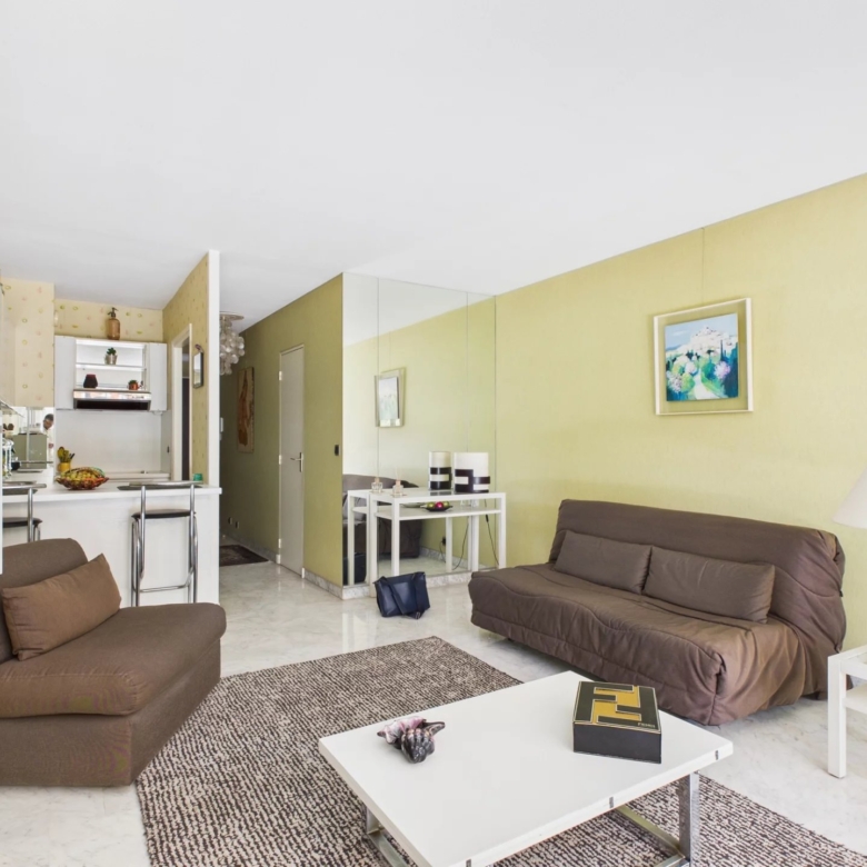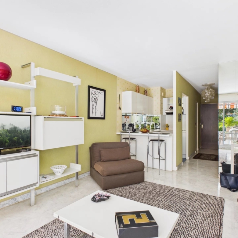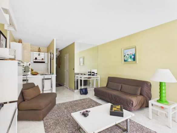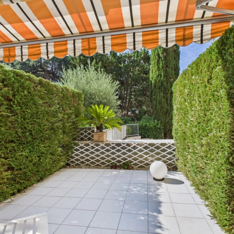 Dans une résidence de standing avec piscine et espaces verts, beau studio de 33 m² situé en rez-de-chaussée, au calme absolu, bénéficiant d’une grande terrasse de 20 m² avec vue dégagée sur le parc et la piscine.